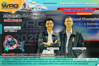 รางวัลเข้าร่วมการแข่งขันระดับประเทศ (Participation Award) ประเภท: หุ่นยนต์เดินตามเส้น (LINE FORMULA) มหกรรมการแข่งขันหุ่นยนต์ของคนทุกระดับ WRG Thailand Championship 2025 วันที่แข่งขัน: 1-3 สิงหาคม 2568