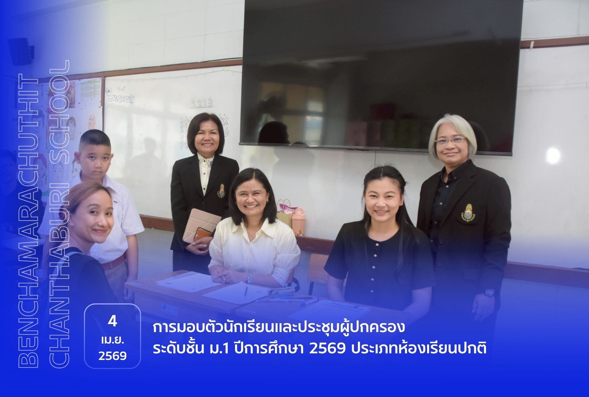 การมอบตัวนักเรียนและประชุมผู้ปกครอง ระดับชั้น ม.1 ปีการศึกษา 2569 ประเภทห้องเรียนปกติ วันที่ 4 เม.ย. 2569