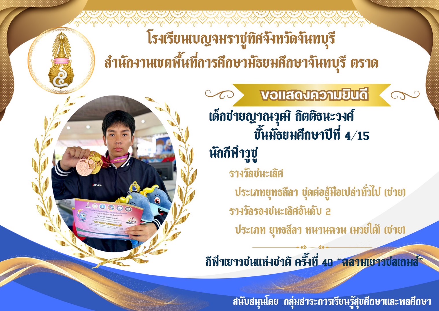 รางวัลชนะเลิศ, รางวัลรองชนะเลิศอันดับ 2 กีฬาวูซู การแข่งขันกีฬาเยาวชนแห่งชาติ ครั้งที่ 40 "ฉลามแยาวชลเกมส์"