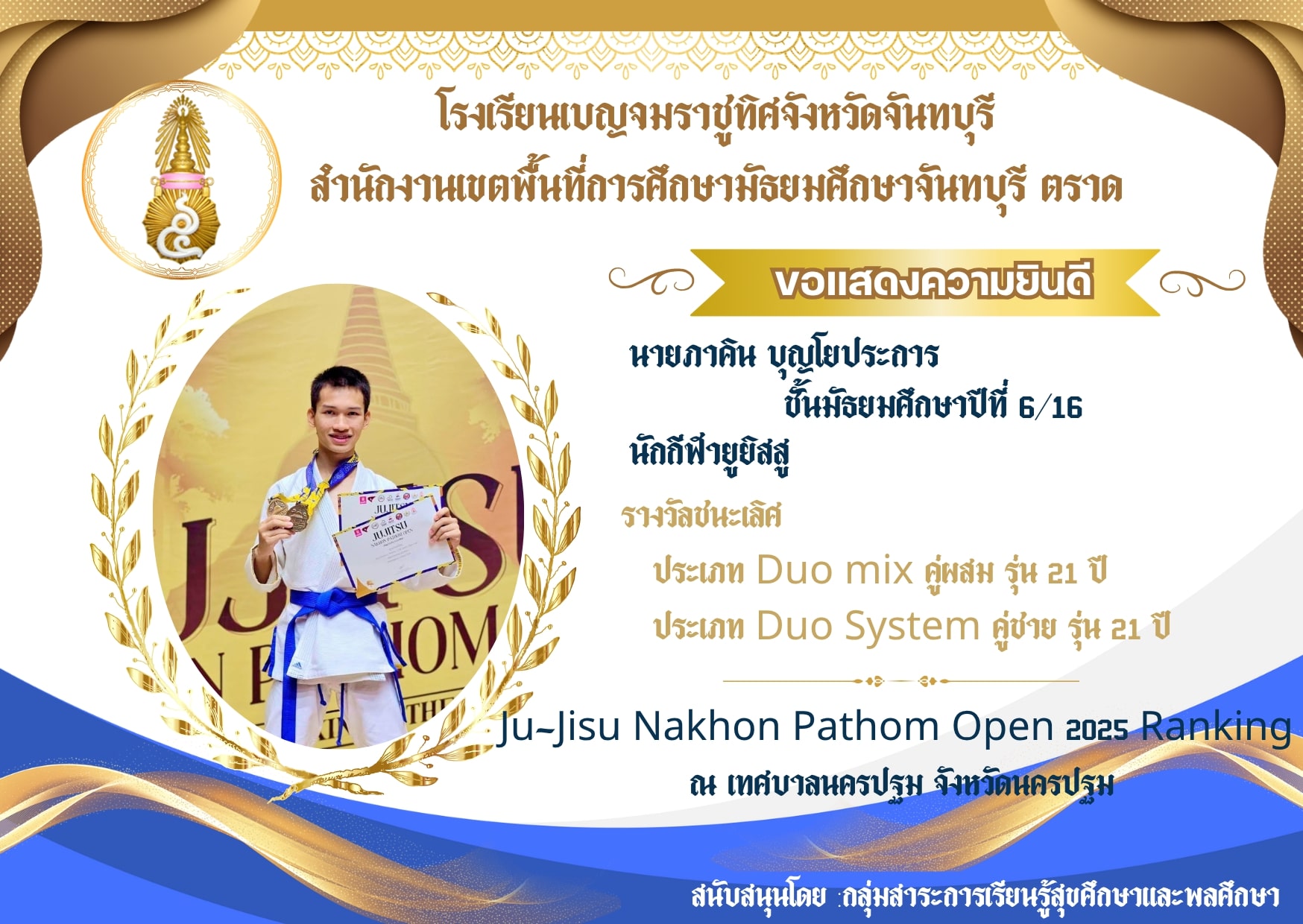 รางวัลชนะเลิศ กีฬายูยิสสู ประเภท Duo mix คู่ผสม รุ่น 21 ปี ประเภท Duo System คู่ชาย รุ่น 21 ปี Ju-Jisu Nakhon Pathom Open zoas Ranking ณ เทศบาลนครปฐม จังหวัดนครปฐม