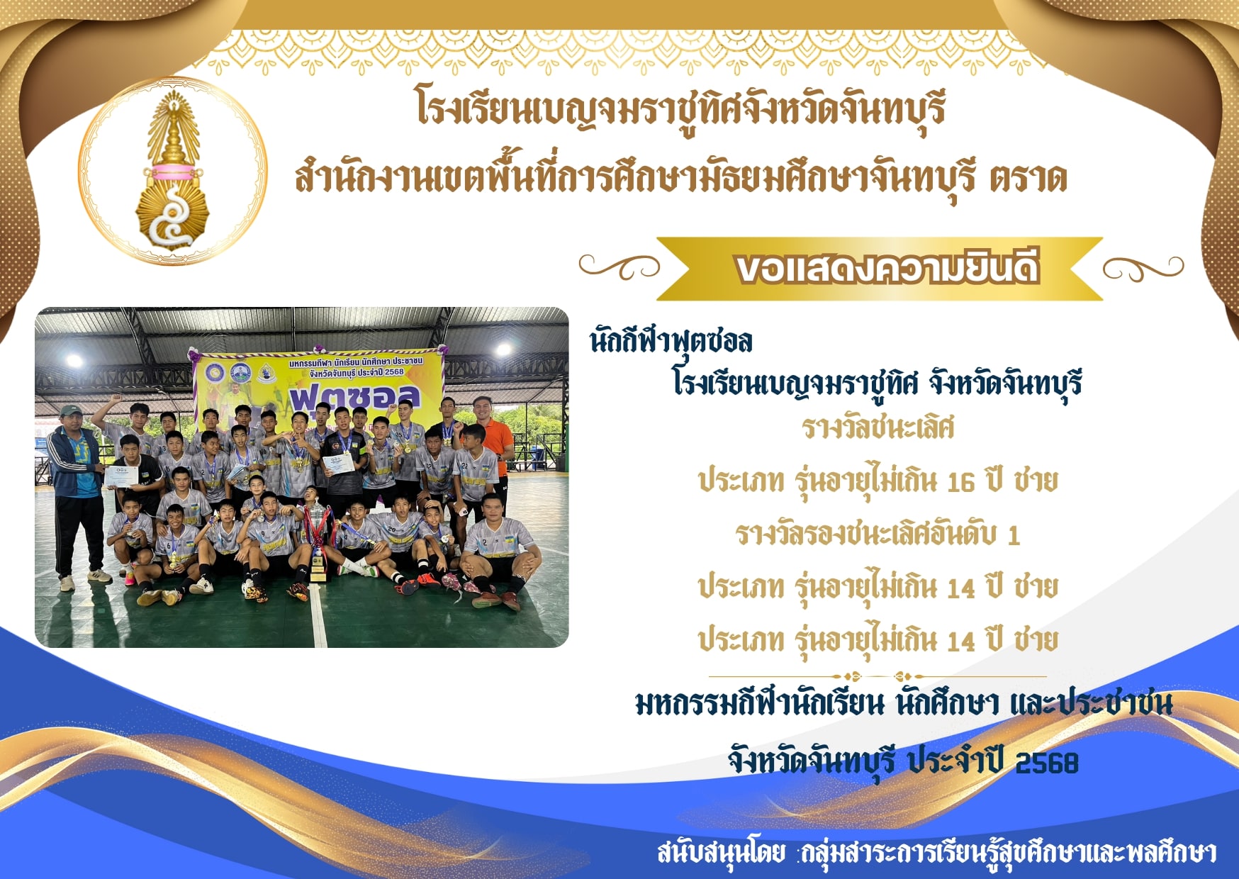 รางวัลชนะเลิศ, รองชนะเลิศอันดับ 1 กีฬาฟุตซอล มหกรรมกีฬานักเรียน นักศึกษา และประชาชน จังหวัดจันทบุรี ประจำปี 2568
