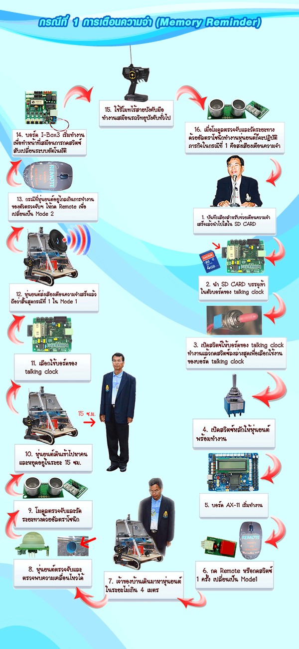 3. เมื่อเจ้าของบ้านอยู่ในบ้านต้องการให้หุ่นยนต์ ช่วยเตือนความจำ (4) เจ้าของบ้านต้องเปิดสวิตซ์หลักตัวใหญ่สุดก่อน